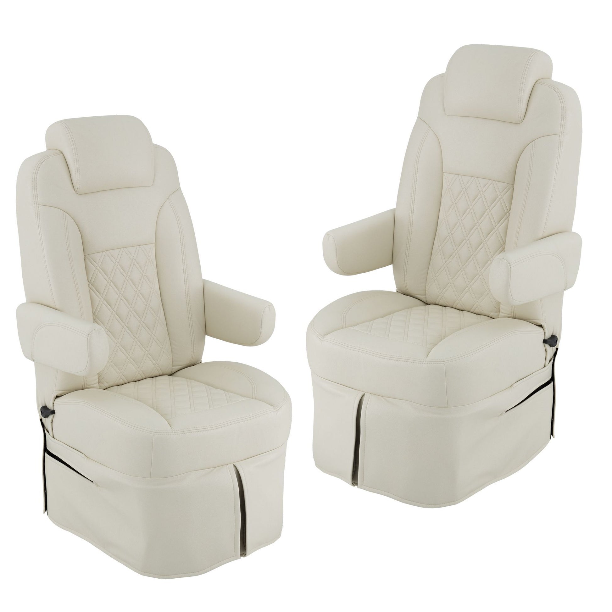 Planning a road trip is a chance to make new memories and see new things. But if there's one thing that can ruin a good road trip, it's uncomfortable seating. Nobody wants to sit in a vehicle longer than necessary, so treat yourself to a better setup with Factory RV's Camper Comfort Captain's Chair. For starters, we want to help you make the most out of your RV, camper, or van, so we're proud to offer four options for this setup — the chair set only which includes a captain's chair for passenger and driver, with a 5.5" pedestal, with a 7" pedestal, or with a 10" pedestal. Our captain's chairs are wrapped in advanced Brisa® material for an ultra-soft feel, exceptional breathability, and sound-absorbing qualities to enhance cabinet quietness and long-term seating comfort, even in varying temperatures. The bucket-style seat and high-resilience fill work together to evenly distribute pressure, reducing fatigue and supporting proper posture during long drives or stationary relaxation. We know how satisfying it is to get out of the vehicle and stretch muscles that have been cramped and cooped up for hours on end, but imagine how satisfying it is to know that you can enjoy a ride without that uncomfortable, cramped feeling? Our captain's chairs recline from a supportive 90º to a relaxed 140º, and with liftable arms that move in harmony with the recline, you can rest assured that you'll enjoy seamless comfort and easy entry or exit. Our chair can slide forward or backward for quick position adjustments to give you a custom fit that best supports you. Please note that the mounting hardware is not included.