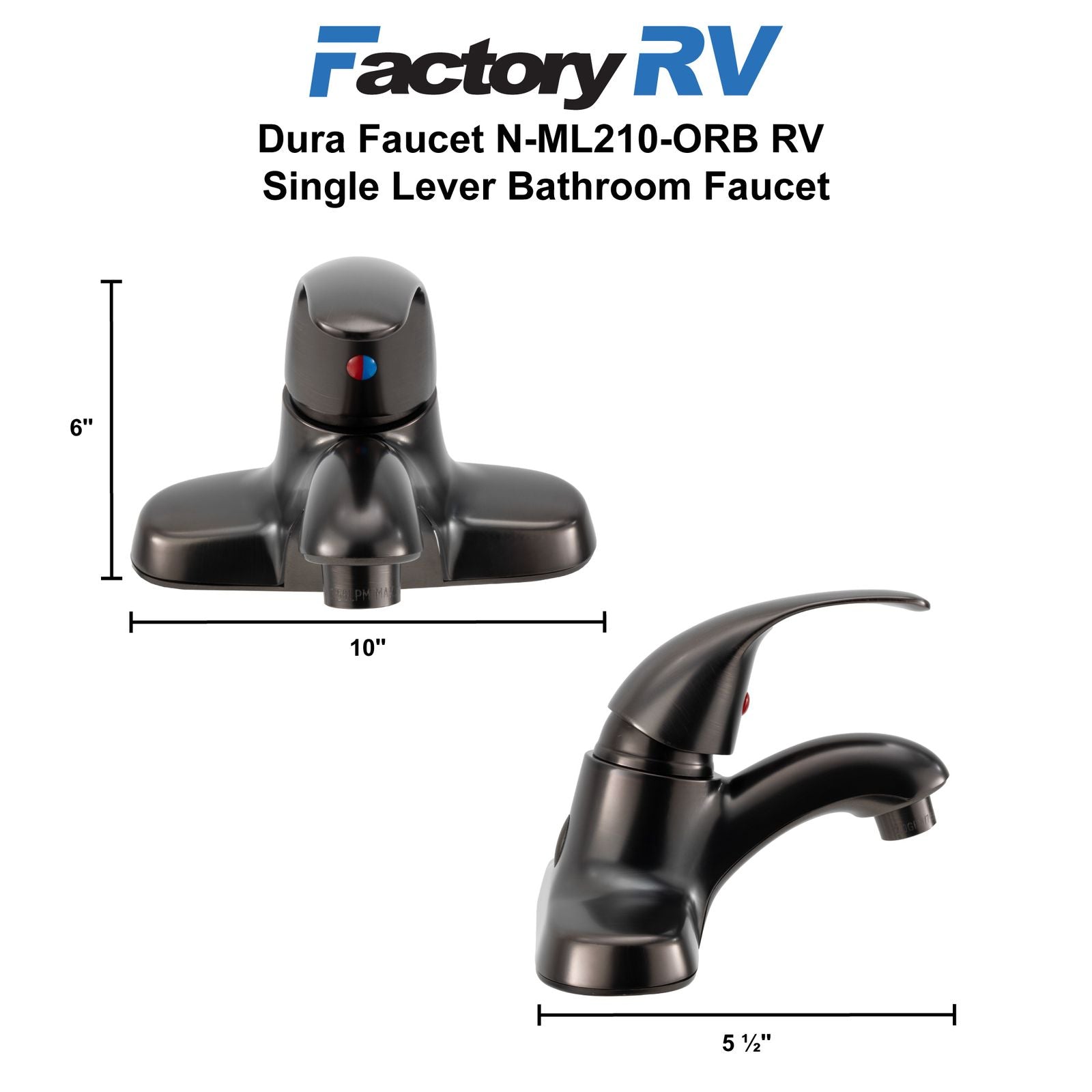 It's a bathroom faucet, but it's for your RV, which means it must withstand the daily wear and tear. It needs to handle the rigorous RV conditions and bumpy roads, so invest in Factory RV and our Dura Bathroom Faucet. Its metallic construction will ensure long-lasting performance whether you're hanging out at the campground or planning a road trip. The single-hole installation is designed to make setup easy so you can have the faucet secure and ready to use in minutes. Whether you're looking for a replacement or an upgrade, you won't go wrong with Factory RV or our Dura Bathroom Faucet. The bronze finish will add a stylish touch to your bathroom, while the single lever gives you easy control over water temperature and flow.