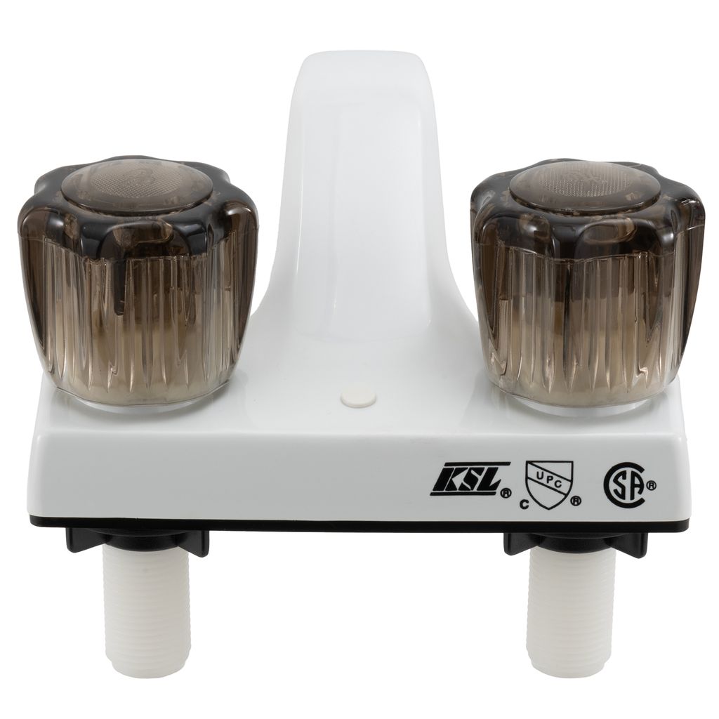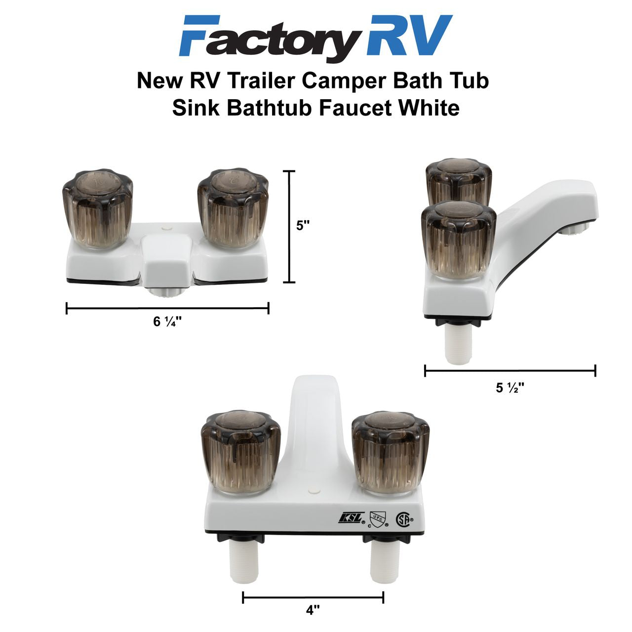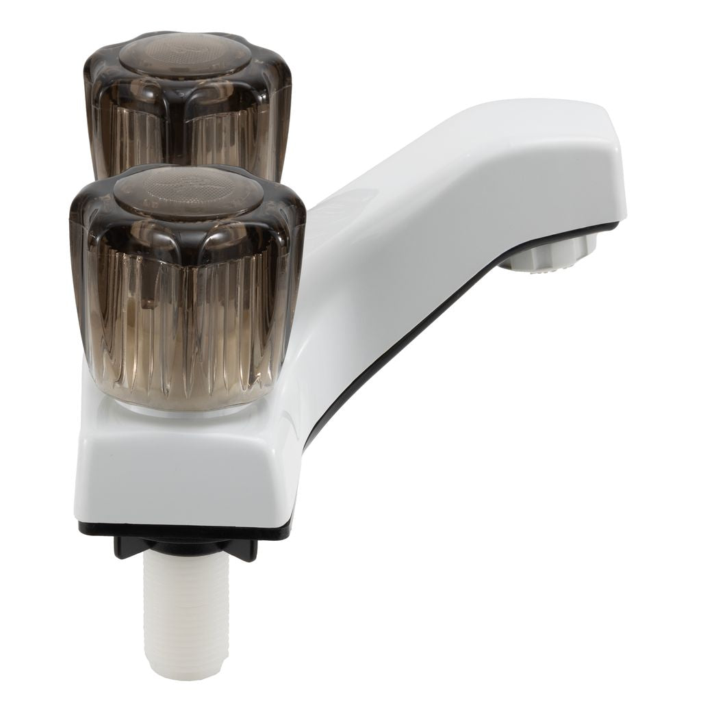 A home away from home is a chance to make fond memories, whether you're planning a road trip or just spending a lazy weekend at the campground. You'll spend a decent amount of time in your bathroom, so you should shop with Factory RV when it comes to remodels. If you want to enjoy a warm bubble bath or just freshen up for the day, upgrade your bathroom with our Bathtub and Sink Faucet. The dual knobs will give you precise control over the water flow and temperature, whether you're looking to kick up the heat or enjoy the chill. The smoke acrylic knobs will add a modern touch that will complement the white finish and help create a stylish look in your bathroom. Designed with a 2-hole mount, this faucet will ensure a simple, hassle-free installation process in your RV.
