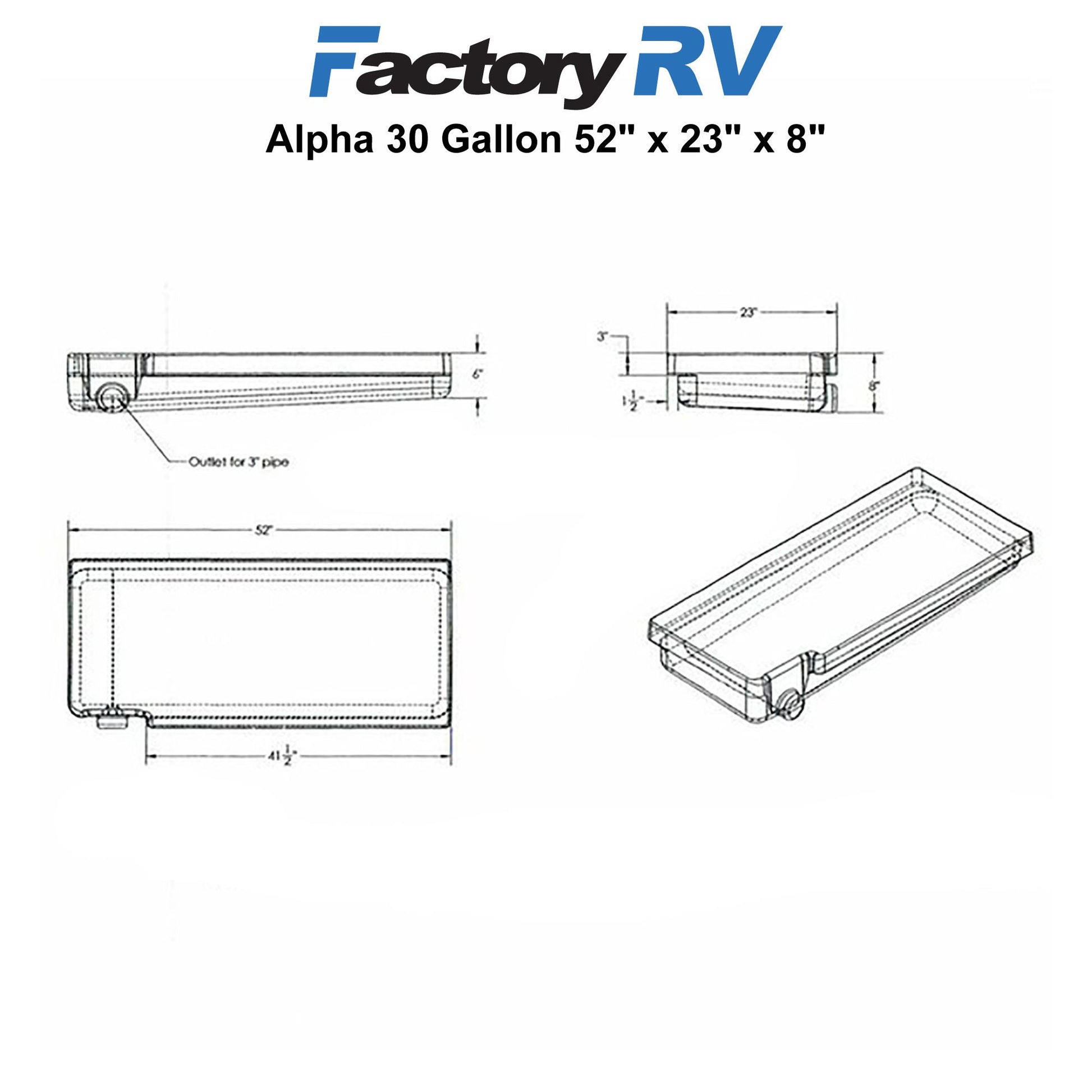 RV Black Water Tank 30 Gallon | 52" x 23" x 8" | Alpha VB23528HL