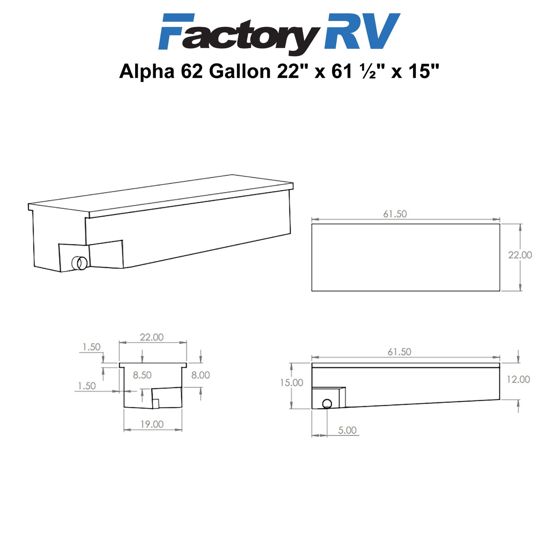 RV Black Water Tank 62 Gallon | 22" x 61 ½" x 15" | Alpha 608001