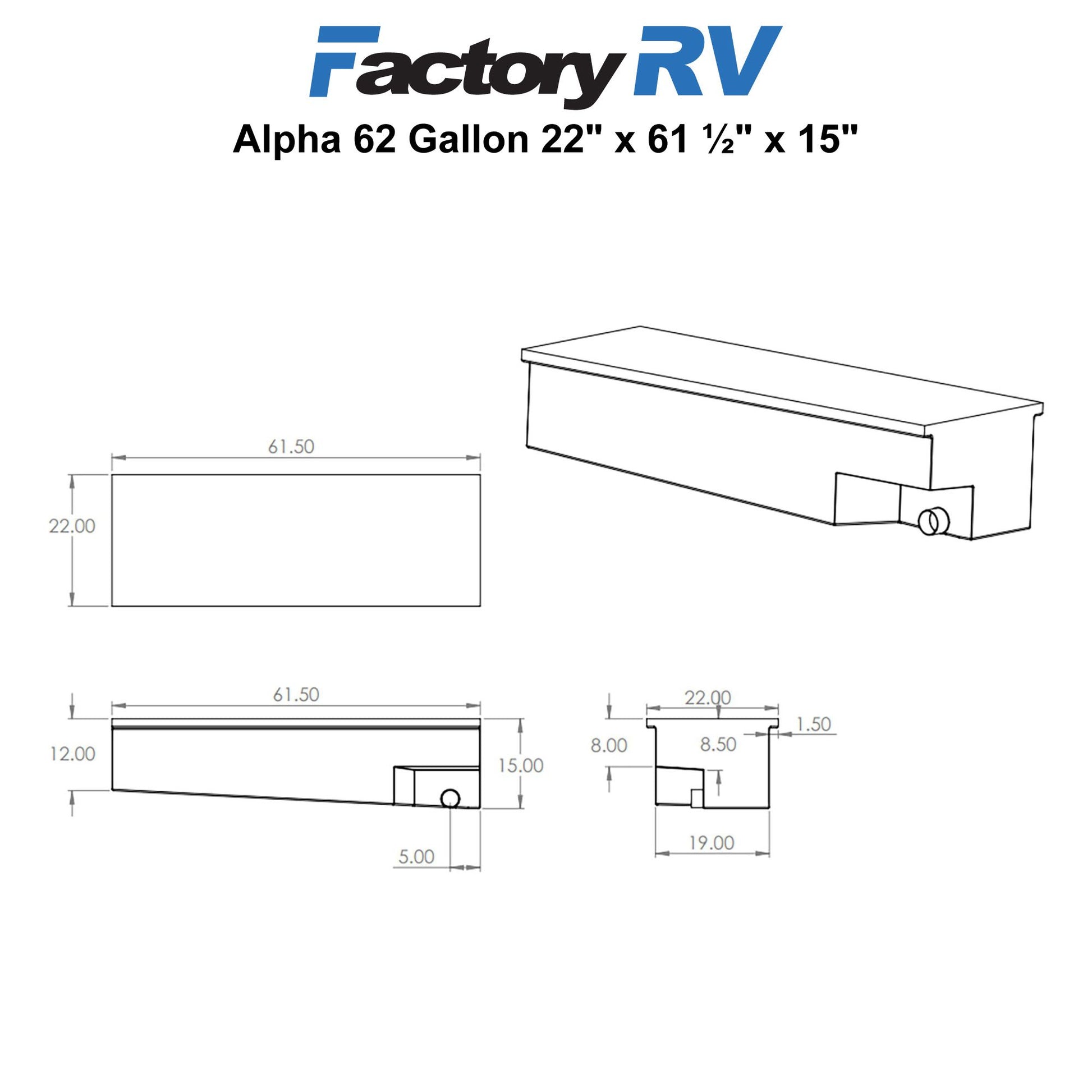 RV Black Water Tank 62 Gallon | 22" x 61 ½" x 15" | Alpha 609001