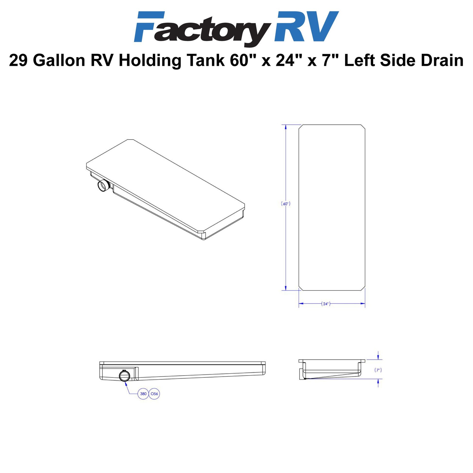 RV Black Water Tank Left Hand Side Drain 29 Gallon | 60" X 24" X 7" | H1117002