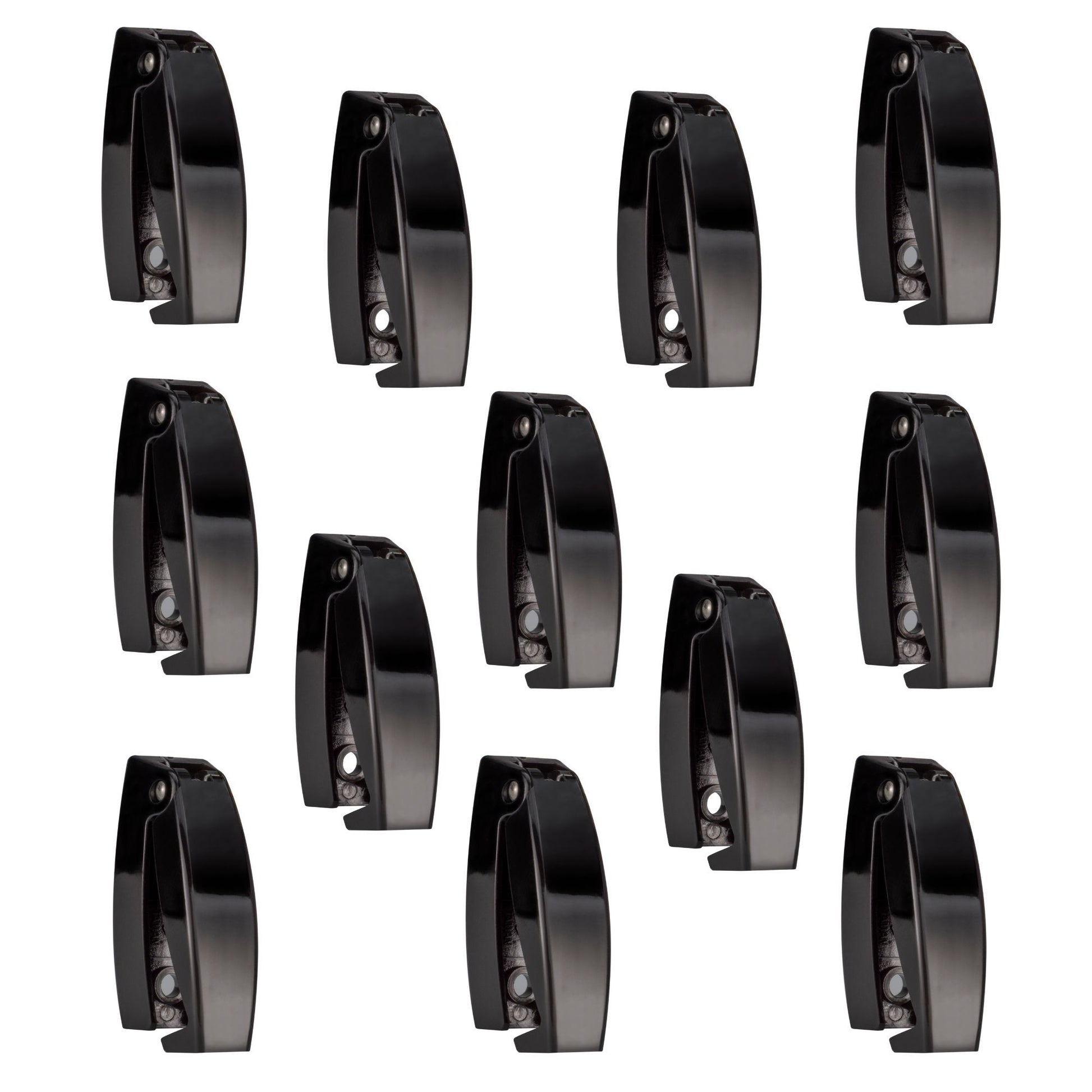 Nobody likes a swinging baggage door that won't stay open. It doesn't have to be an issue, though, when you invest in Factory RV and our Baggage Door Catch Clip. The sleek black finish will blend with various RV exteriors and complement your setup. The sturdy, durable plastic will ensure long-term reliability and withstand the rigors of RV life. This baggage door catch clip flips open to hold the baggage door open to keep it steady while loading, unloading, or accessing your storage. Designed with a built-in spring, the catch will automatically return to its closed position to keep your things secure and safe when the door is shut. For your convenience, we offer the baggage catch clip in four quantities — 1-pack, 2-pack, 5-pack, or 12-pack — so you can stock up or invest in multiple baggage compartments.