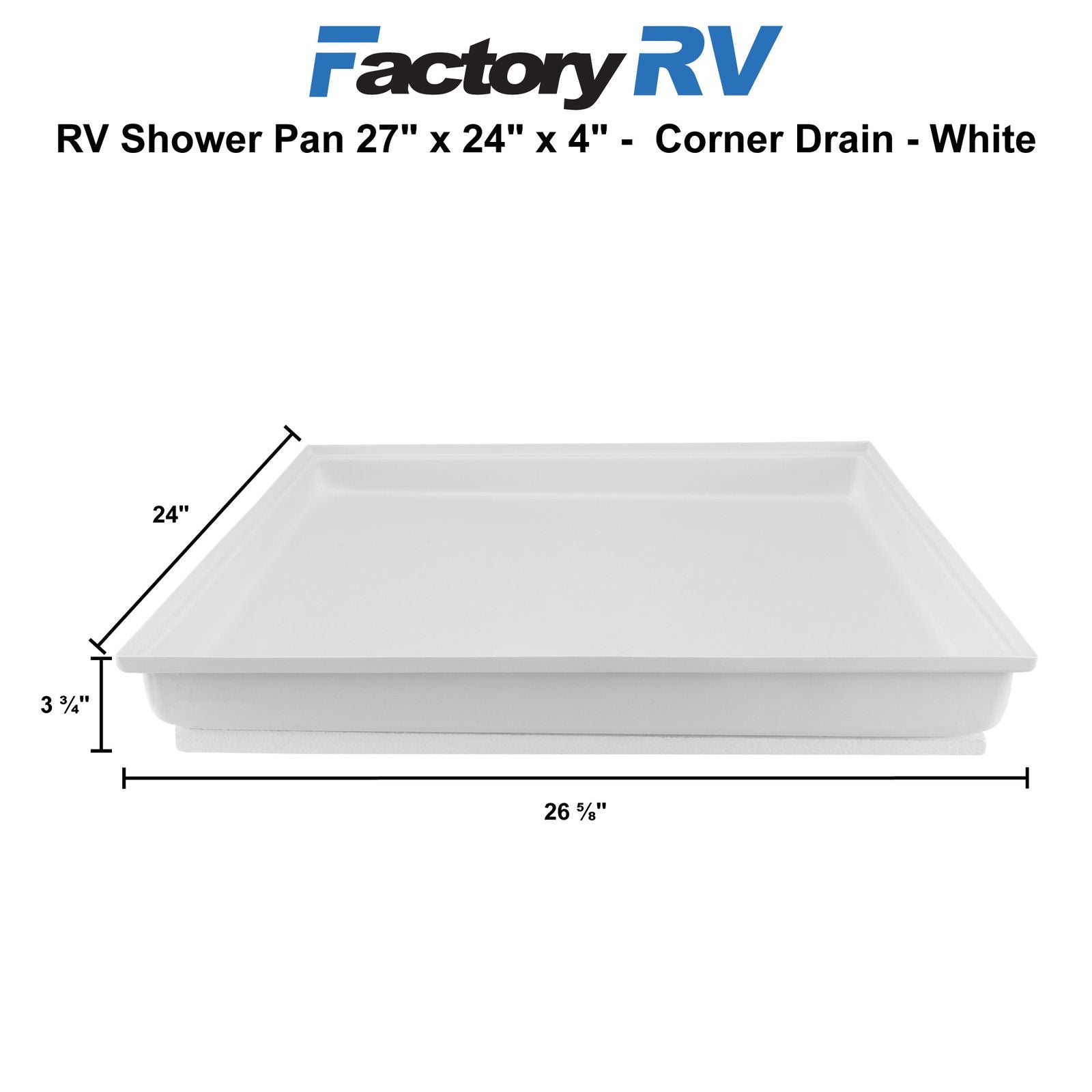 RV Shower Pan 27" x 24" x 4" Corner Drain | White