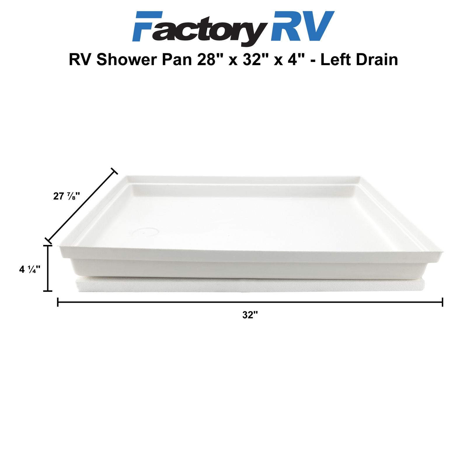 RV Shower Pan 28" x 32" x 4" Left Drain | White