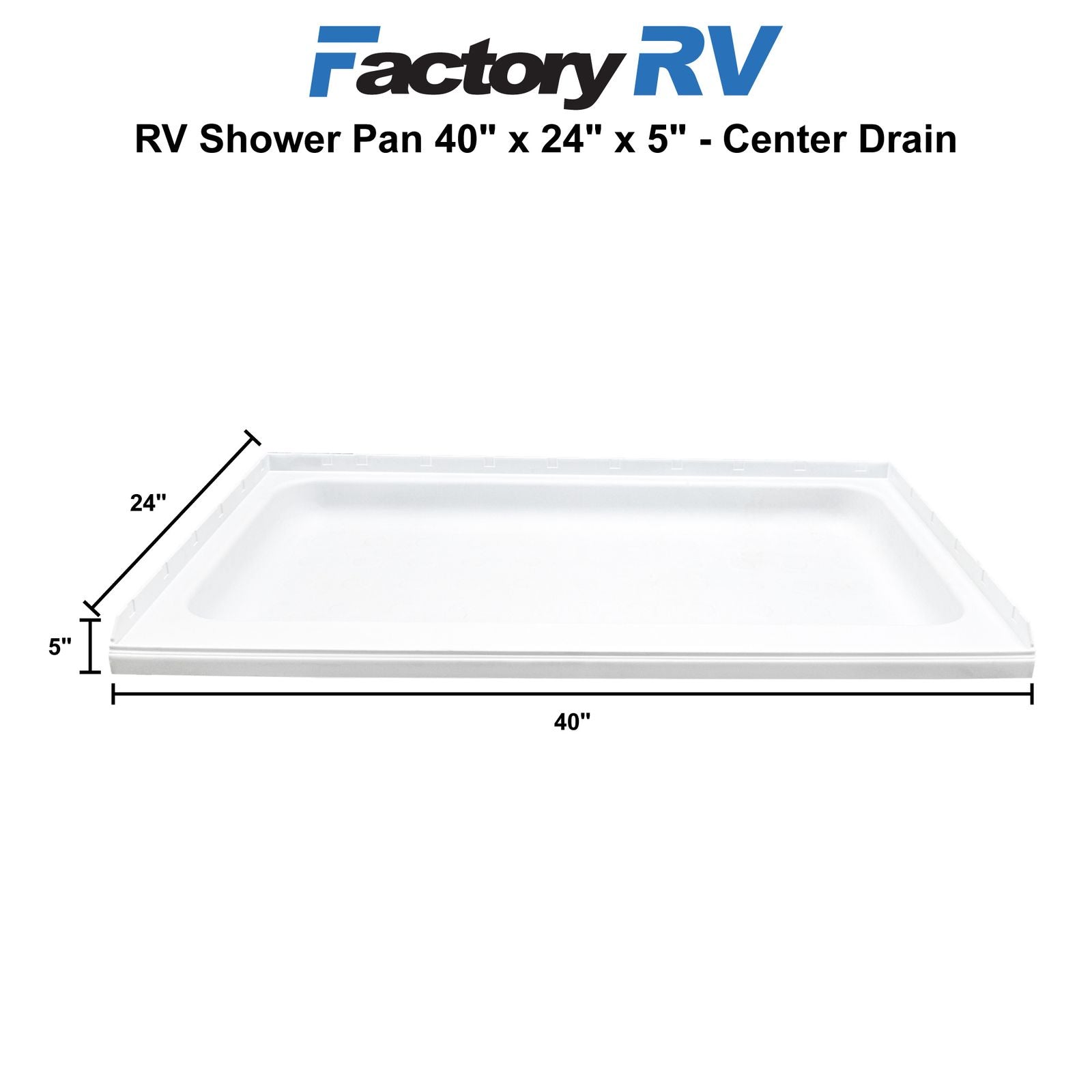 RV Shower Pan 40" x 24" x 5" Center Drain | White