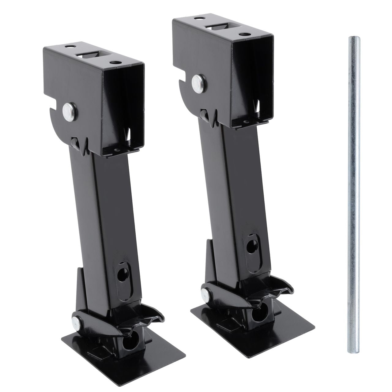 You've put a lot of thought and effort into your RV, trailer, or camper. It has the perfect setup that best suits your needs and taste in style, but now it's just a matter of stability. Nobody likes setting up on uneven terrain that might cause your vehicle to tilt, lean, and sway. Whether you're hanging out at the campground or enjoying the sights on a road trip, you'll want stability when you park. That's why you should invest in Factory RV's Telescoping Stabilizer Jack. The heavy-duty steel construction will ensure long-lasting performance in various weather conditions, while the black-painted finish adds a stylish touch to complement your vehicle. These jacks come in a 2-pack with an included handle for additional stability that will let you effortlessly adjust the height and secure the positioning. With an adjustable height from 11 ½" to 17 ¾", this jack will accommodate uneven terrain and ground levels. In addition, the jacks each have a capacity of 1000 lbs to act as a reliable solution for stabilizing your vehicle.