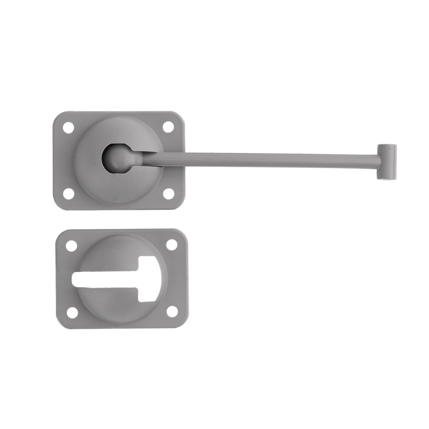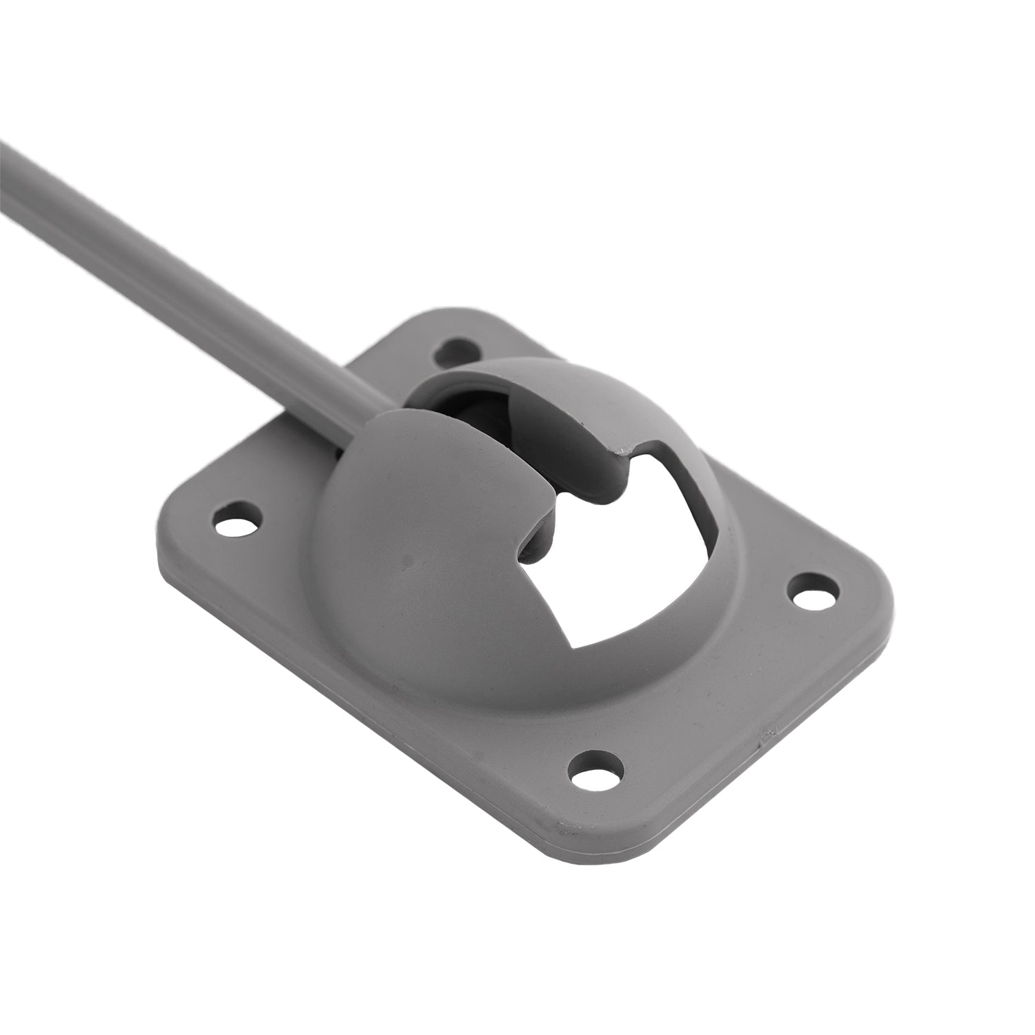 When loading or unloading your RV, the last thing you want to worry about is the door swinging on you. You may need to crack open the door while cooking in the kitchen. When you're spending time in your RV, whether that means hanging out at the campground with friends and family or planning a road trip, you'll want to invest in Factory RV and our 4" T-Style Hook and Keeper Door Holder. Made with durable plastic construction, this door holder will withstand harsh outdoor elements to ensure long-lasting performance and functionality. The gray finish will add a stylish touch that will complement your RV, while the ball socket connection provides added flexibility for ease of use compared to other rigid door holders. With an arm length of 4 ½", the holder is compact enough to stay out of the way without interfering with door movements.