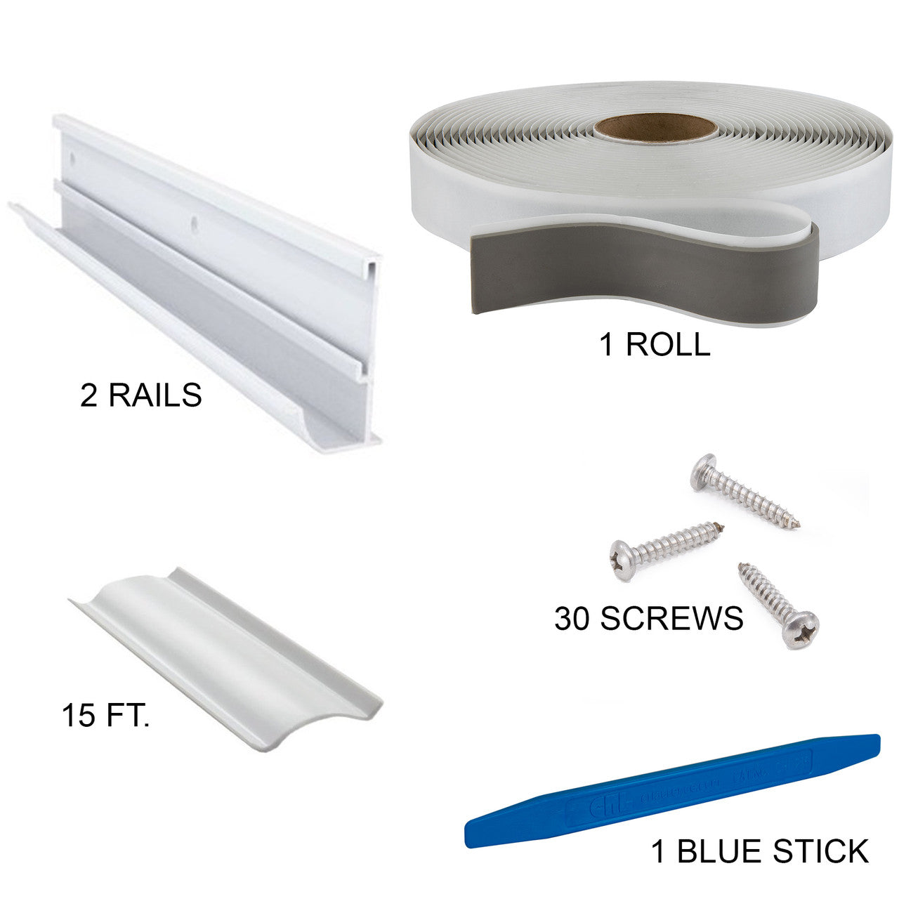 Nobody likes going outside the day after a rainstorm and stepping in puddles. Even less pleasing are the streaks, stains, and moisture damage that come with rain. So, you need a gutter to ensure the rain doesn't pool up around your RV or trailer. But like everything else in life, your rain gutter goes through frequent use, wear and tear, and exposure to UV rays, rain, bugs, and critters. That means upgrading or replacing the gutter with Factory RV's Rain Gutter Trim Kit. When you invest in this kit, you're investing in a gutter system and exterior trim that channels water away from the sidewalls, preventing streaks, stains, and water damage while enhancing the exterior appearance. Built from high-grade aluminum with a powder-coated finish, you can rest assured that you're in good hands for protection against corrosion, UV damage, and harsh outdoor conditions. Our kits come in lengths ranging from 10 to 40 feet, allowing you to choose the ideal amount for your specific needs, whether it's a minor repair or a complete upgrade. With our kit, you'll get everything you need for a quick and easy installation; the rails, vinyl insert, mounting screws, blue stick tool, and butyl tape.
