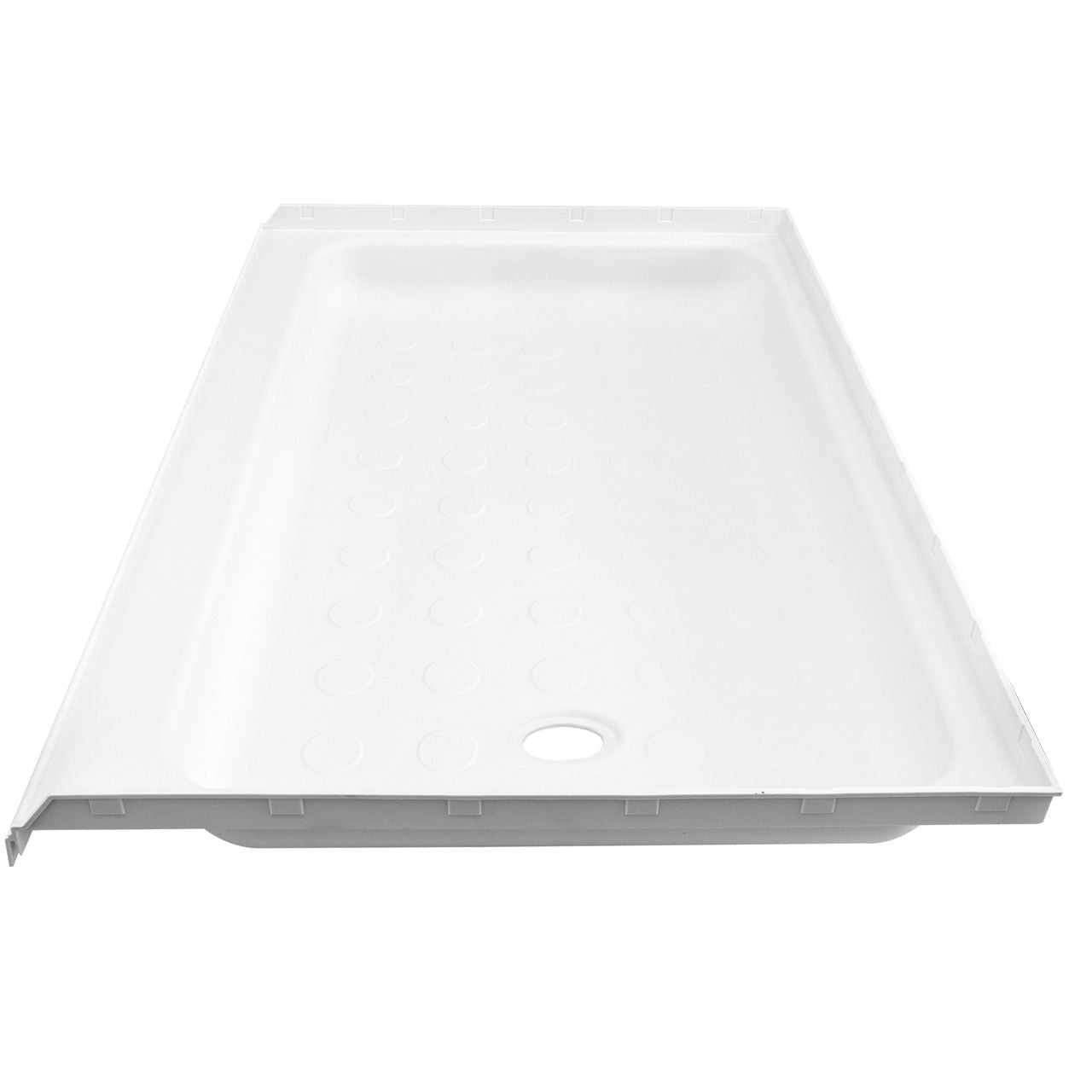 Everyone needs to shower eventually, even more so when you're spending time in your RV. But the last thing that you want to worry about is slips, falls, or moisture damage. A shower pan, which is frequently used and exposed to various road conditions, is only a matter of time before it breaks down and becomes hazardous to use. Give yourself peace of mind with Factory RV's Right Shower Pan with Drain. The sleek white finish will simplify cleaning and offer a stylish look to complement various RV bathroom setups. Built with ABS plastic and featuring a lightly textured bottom, you can rest assured that you're investing in long-lasting protection, stability, and durability that withstands road vibrations and frequent use. This shower pan is designed with a 2" right drain hole, allowing you to utilize the pan for corner and wall showers, and to give you ease of installation, we include the drain fitting. Please note that this shower pan should not be cleaned with ammonia or harsh cleaning agents.