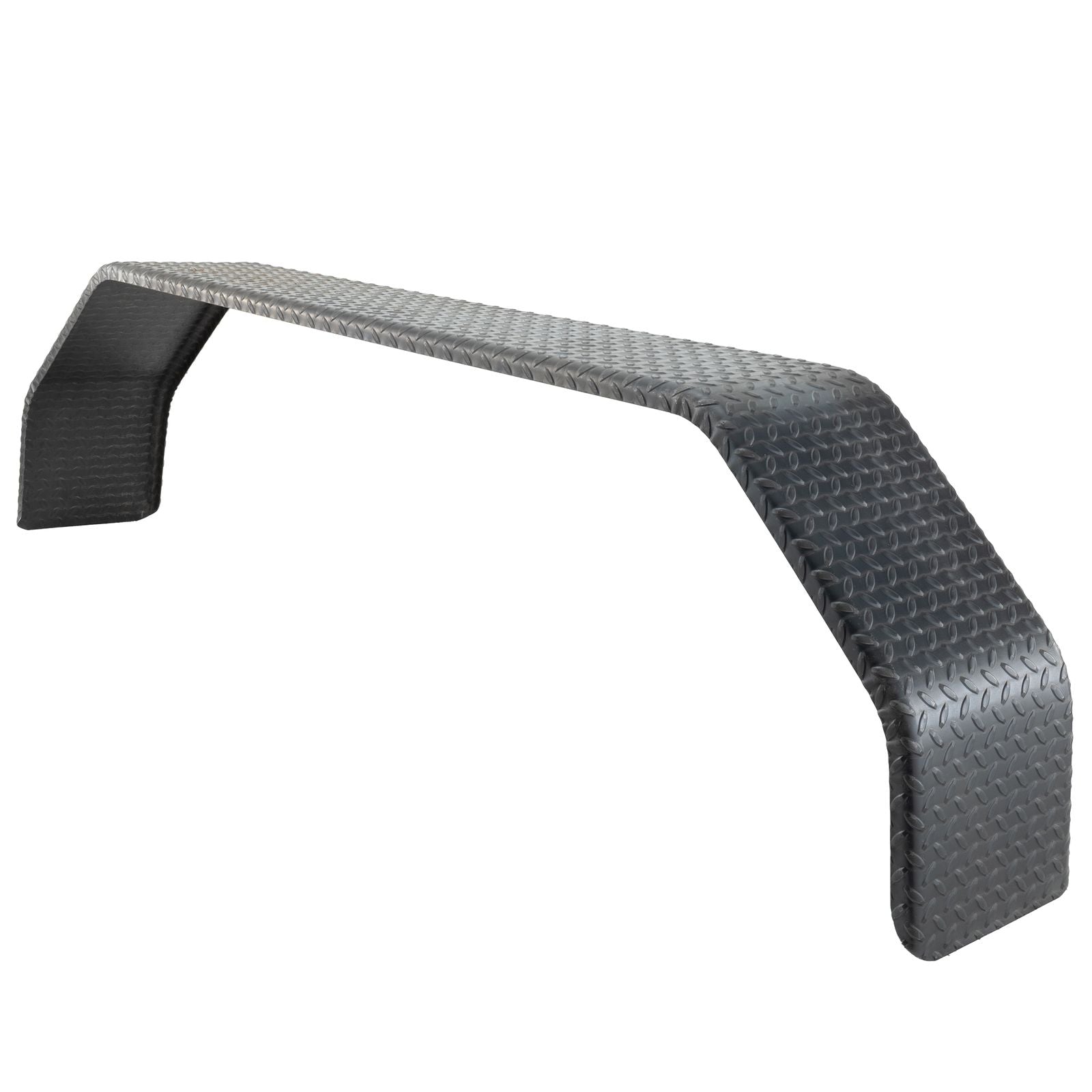 Wherever life takes you, be prepared to handle rain, mud, dirt, dust, and debris without dirtying your vehicle or the tires. If you want to cover your bases with something durable yet rugged, consider Factory RV's Tandem Trailer Fender. It's designed with a diamond plate finish and a flat top for easy installation, providing a rugged look that complements your trailer's exterior. Built with 14-gauge steel, rest assured that this fender is designed to withstand the rigors of life on the road — UV rays, rain, dust, dirt, debris, and other road and off-road conditions. With a bolt-on mounting design, you can have this fender installed in no time and enjoy peace of mind knowing it's built for a secure installation that will last for years to come. With this type of trailer fender, you're looking at advantages of strength and durability, so whether you're headed to the campground, going off-grid, or getting to the worksite, this fender will do the job to protect your tires and your trailer from any dust and debris. Choose between a single or 2-pack option, whether you're replacing an old, worn fender or upgrading to an entirely new look.