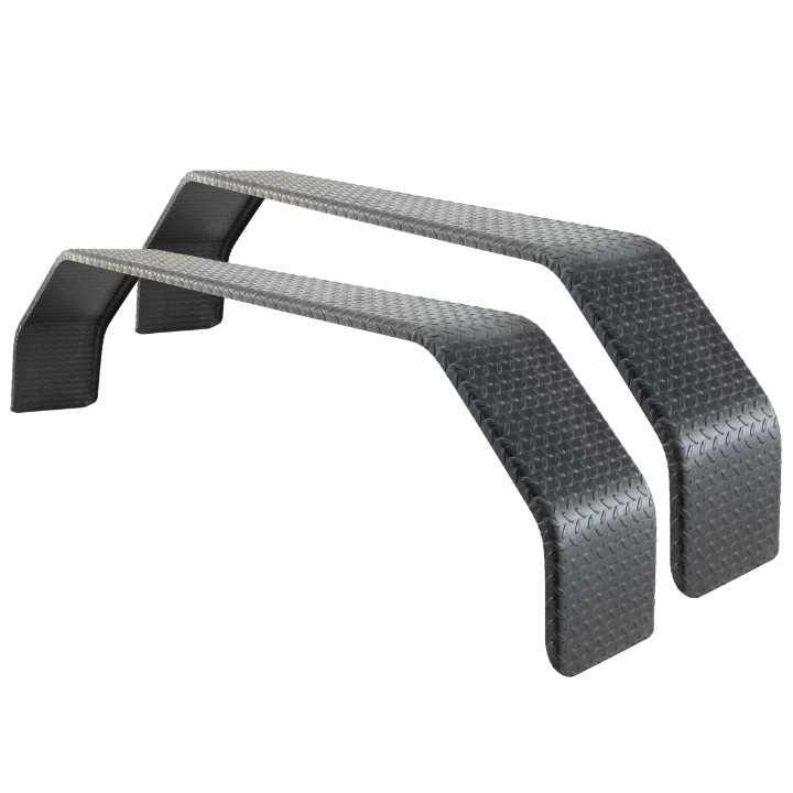Wherever life takes you, be prepared to handle rain, mud, dirt, dust, and debris without dirtying your vehicle or the tires. If you want to cover your bases with something durable yet rugged, consider Factory RV's Tandem Trailer Fender. It's designed with a diamond plate finish and a flat top for easy installation, providing a rugged look that complements your trailer's exterior. Built with 14-gauge steel, rest assured that this fender is designed to withstand the rigors of life on the road — UV rays, rain, dust, dirt, debris, and other road and off-road conditions. With a bolt-on mounting design, you can have this fender installed in no time and enjoy peace of mind knowing it's built for a secure installation that will last for years to come. With this type of trailer fender, you're looking at advantages of strength and durability, so whether you're headed to the campground, going off-grid, or getting to the worksite, this fender will do the job to protect your tires and your trailer from any dust and debris. Choose between a single or 2-pack option, whether you're replacing an old, worn fender or upgrading to an entirely new look.
