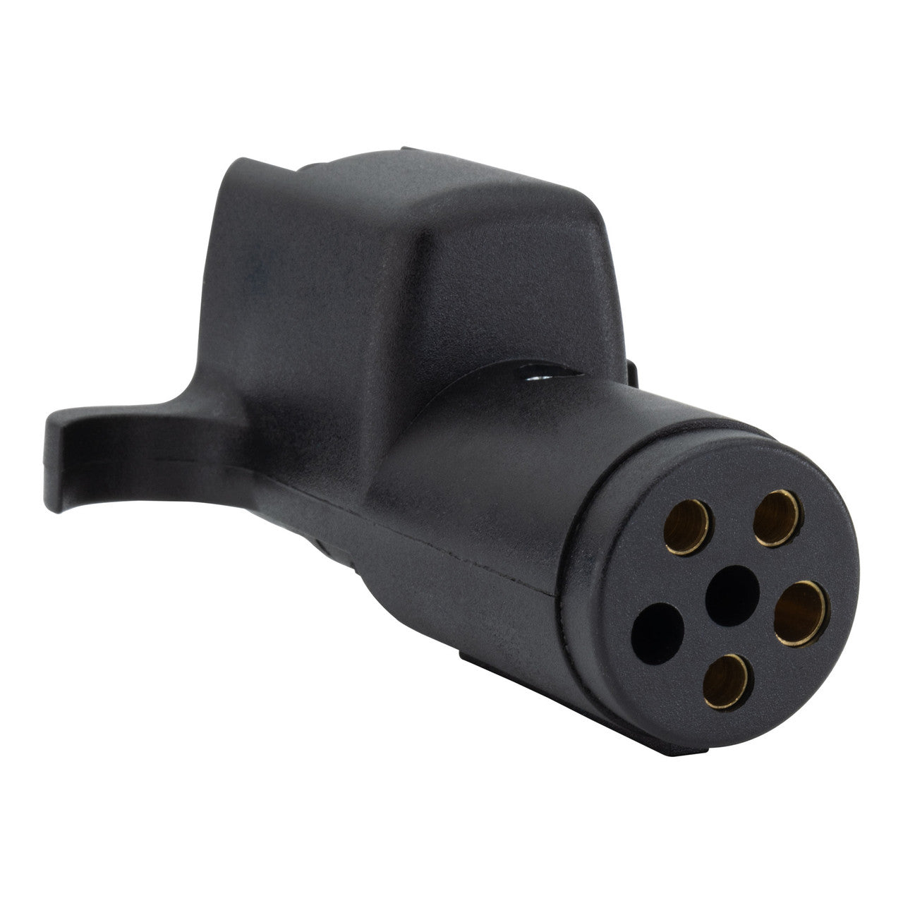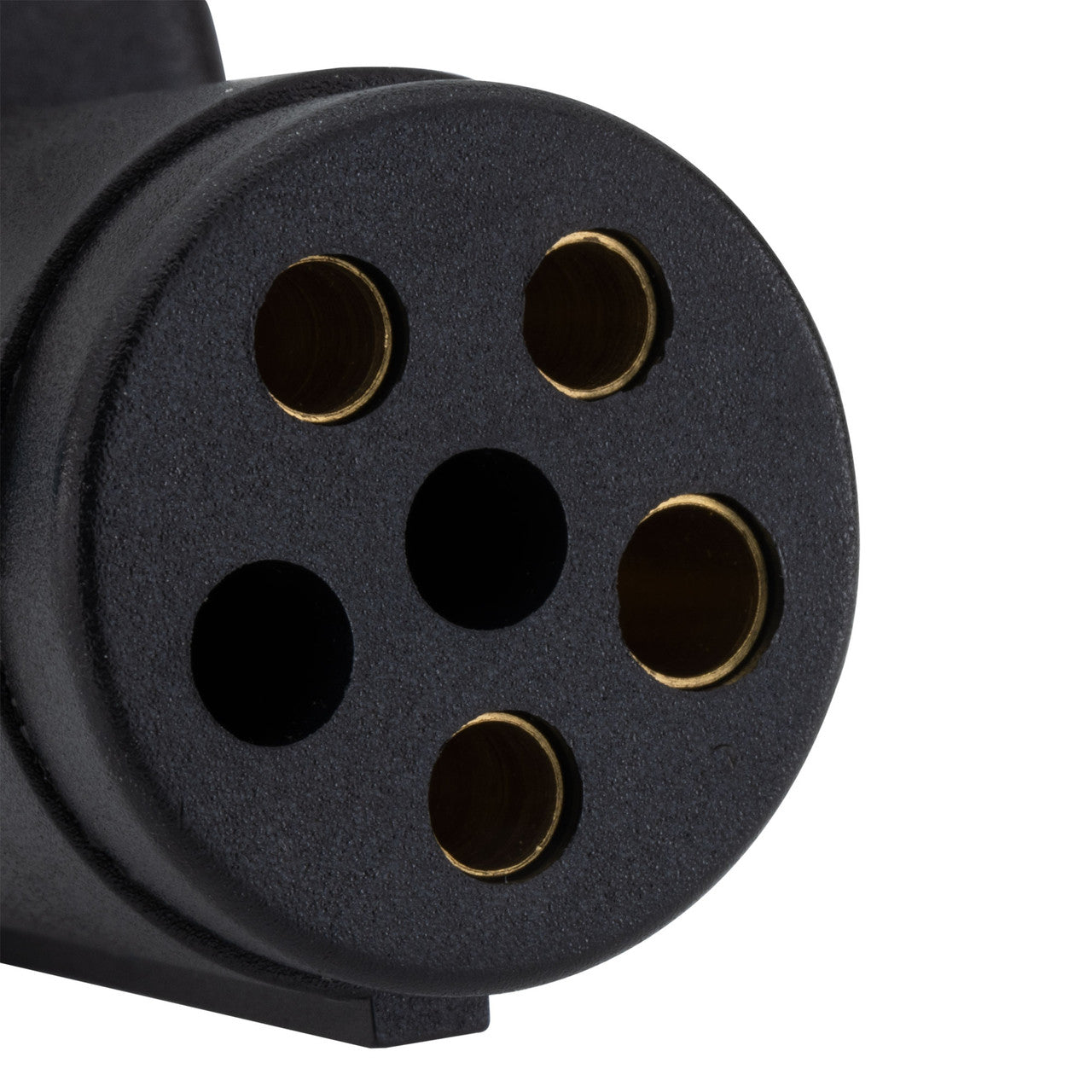 There's nothing worse than dealing with incompatibility when it comes to towing your trailer. Rewiring for the setup can be costly, and canceling your plans isn't ideal. So it sounds like you need to invest in Factory RV's Trailer Connector Adapter. This adapter is simply a plug, serving as a 6-pole to 4-pole flat adapter. With this adapter, you can convert a 6-pole round pin connector on your vehicle to a 4-pole connector on your trailer, making the setup easier and simpler. With this connector, you can rest assured that you're covering all of your bases — ground, left turn, right turn, stop, and tail lights — allowing you to get back on the road in no time. Whether you're hitting the open road, settling down at the campground, or going off-grid camping, you can rest assured that you're investing in an adapter to ensure safety on the road. The finger grips design allows for easy use whether you're connecting or disconnecting, and the non-corrosive nylon shell and insert ensure long-lasting durability in various road and weather conditions. Rest assured that you're in good hands with this adapter, thanks to its heavy-duty plastic construction and sturdy wire, which gives you peace of mind when you're on the road without worrying about connectivity to the lights.