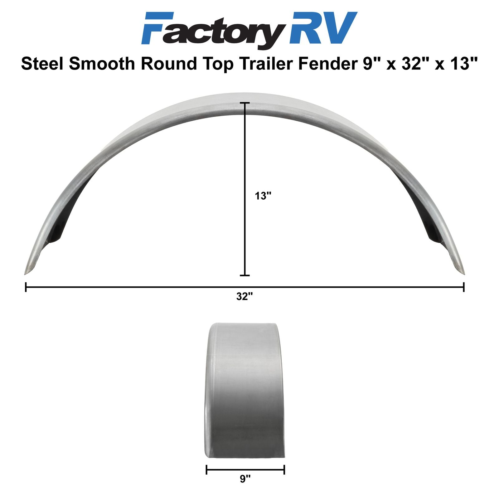 Trailer Fender | Steel Smooth | Round Top | 9" x 32" x 13"